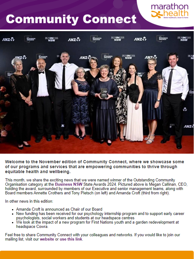 The November edition of Community Connect is now out, showcasing some of our programs and services that are enabling communities to thrive through improved health and wellbeing.
